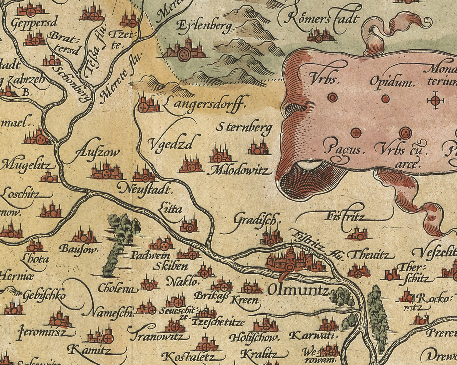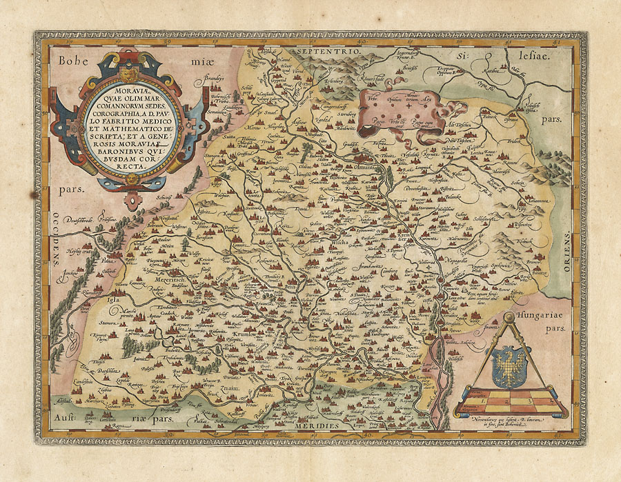 Mapa z dílny nizozemského nakladatele Abrahama Ortelia, vytvořená podle dřívější předlohy – nejstarší známé mapy Moravy P. Fabricia z roku 1569