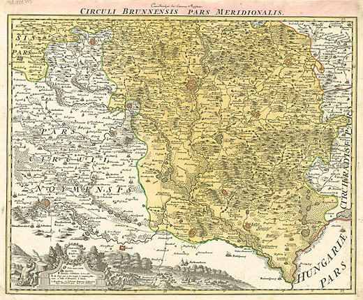 Marchionatus Moraviae Circulus Brunnensis ] [quem Mandato Caesareo accurate emensus hac mappa delineatum exhibet I. C. Müller S. C. M. Capit. et Ingen.] , Cum Privilegio Sac. Caesareae Majestatis