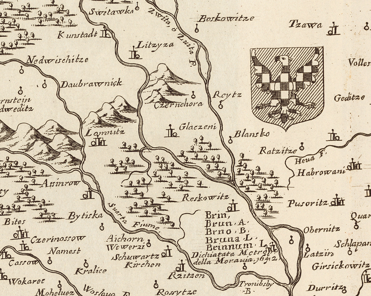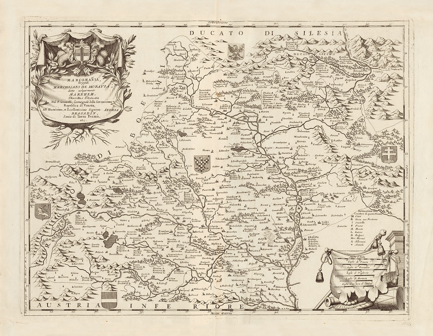 Marcomania, hoggidi Marchesato De Moravia, detto uolgarmente Marnhem Descritta, e Dedicata Dal P. Coronelli, Cosmografo della Serenissima Republica di Venetia, All’ Illustrissimo, et Eccellentissimo Signore Andrea Bragadin, Sauio di Terra Ferma, etc.