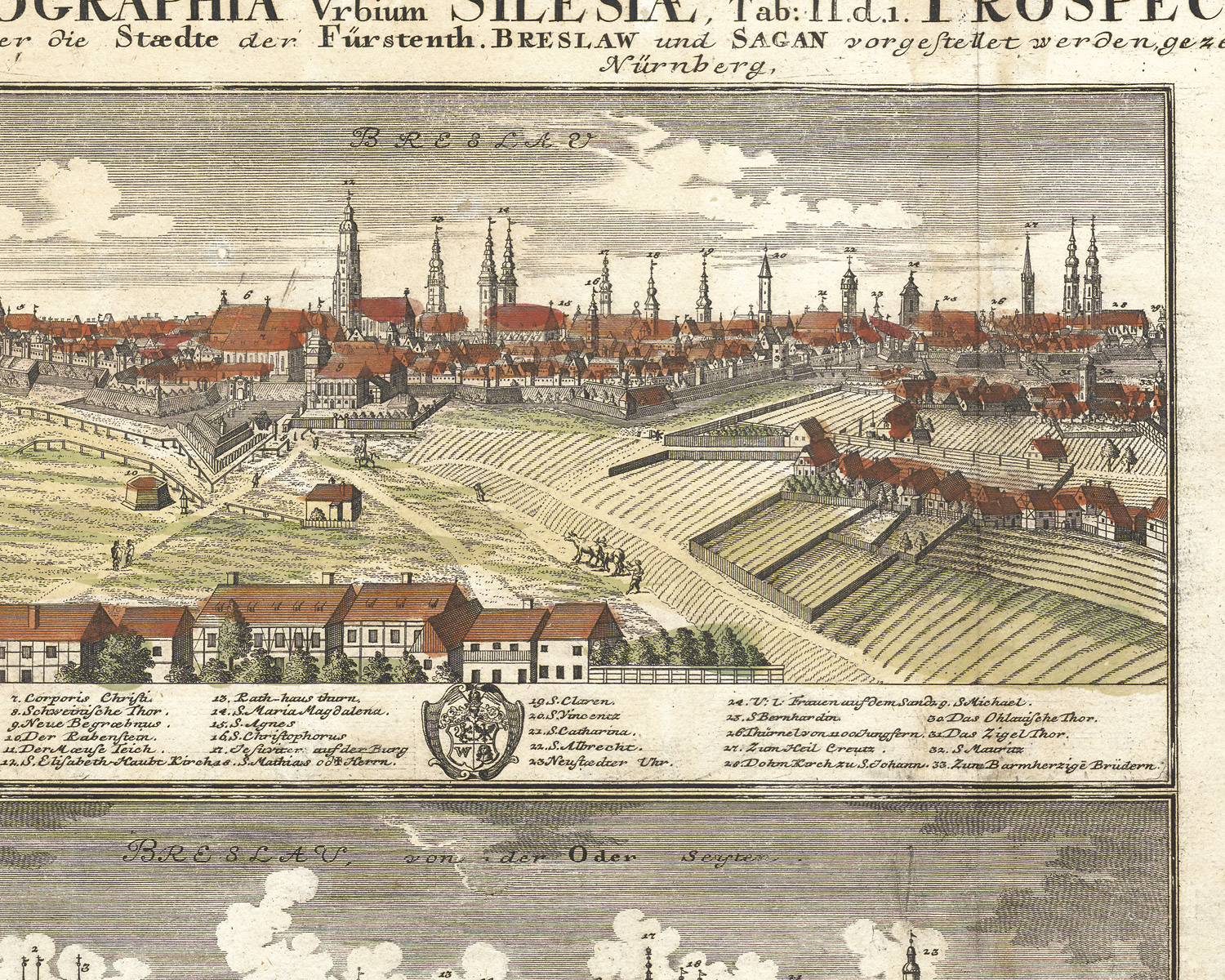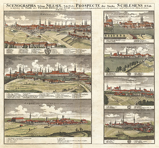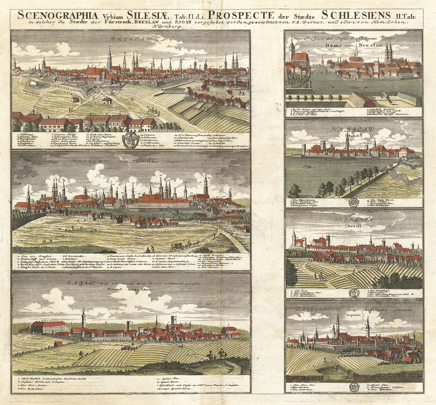 Veduty polských měst: 3x Vratislav, Zaháň, Namyslov, Slezská Středa, Hlubčice