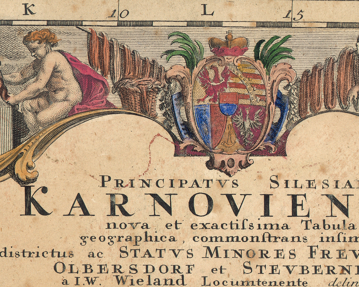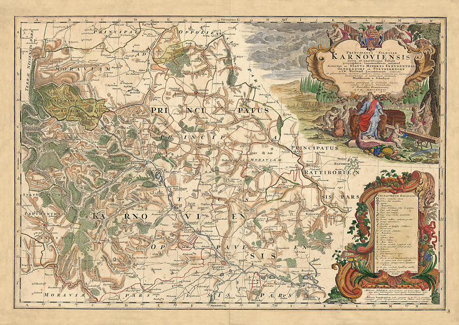 Principatvs Silesiae Karnoviensis nova et exactissima Tabula geographica, commonstrans insimul districtus ac Statvs Minores Frevdenthal Olbersdorf et Stevberndorf. 8