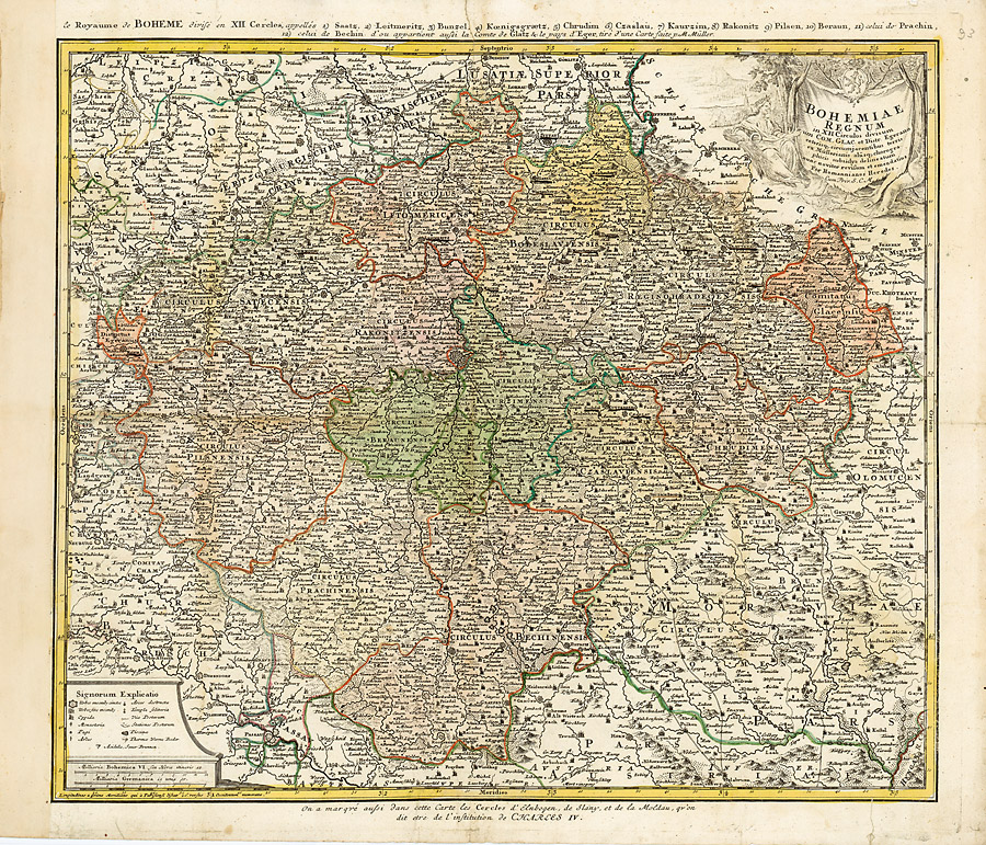 Bohemiae regnum in XII circulos divisum cum com. Glac. et distr. Egerano ceterisq. circumjacentibus terris ex Müllerianisaliisq. chorographicis subsidiis delineatum per Homannianos herede